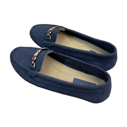 MOCASIN CHATO CLEO GAMUZA AZUL-