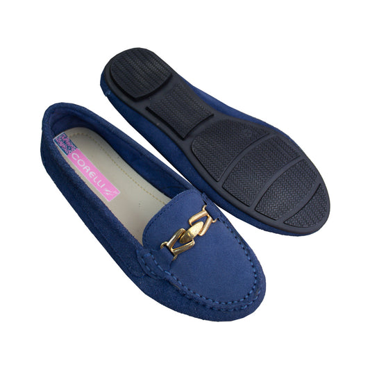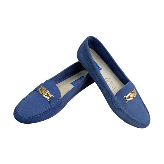 MOCASIN CHATO CLEO GAMUZA AZUL-