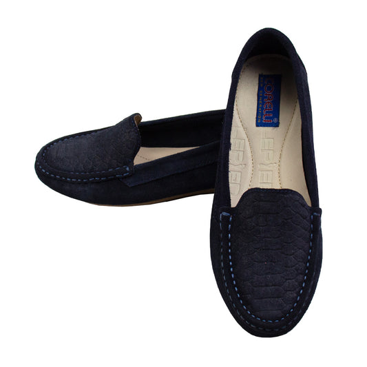 MOCASIN CHATO CLEO GAMUZA AZUL-
