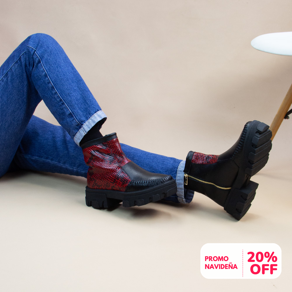 Siente la comodidad de nuestro BOTIN HELENA NEGRO -PITON ROJO