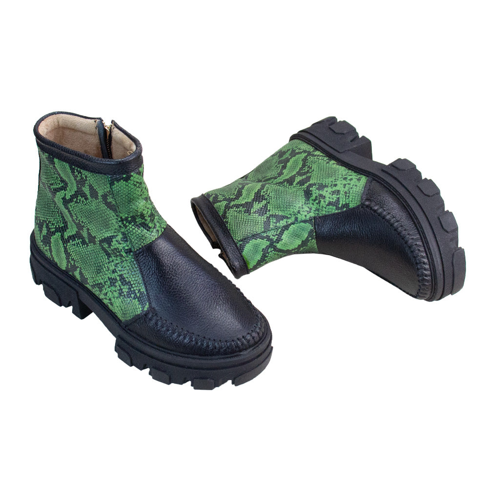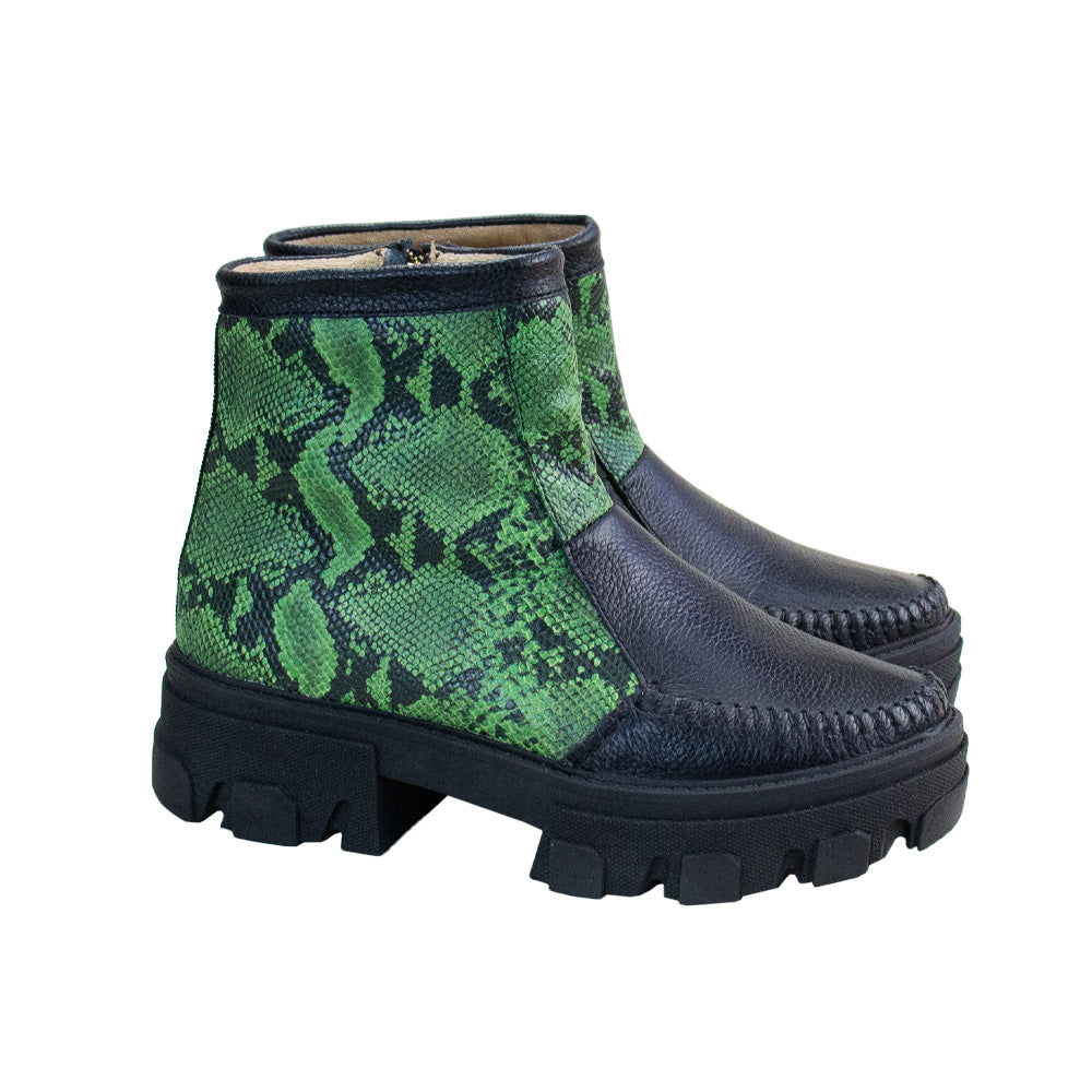 Siente la comodidad de nuestro BOTIN HELENA NEGRO-PITON VERDE
