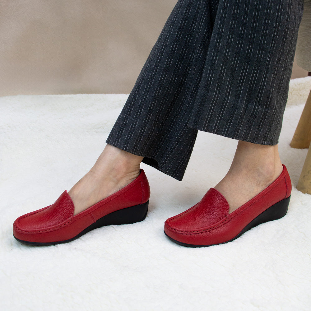 Siente la comodidad de nuestro Mocasín TACO CUÑA LARISA ROJO