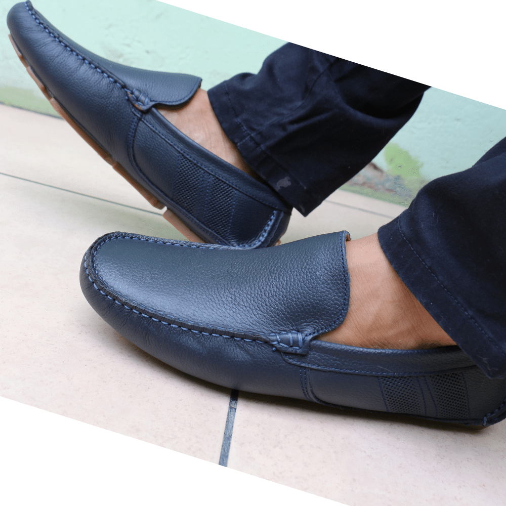 Siente la comodidad de nuestro Mocasín Moca Cuero Azul