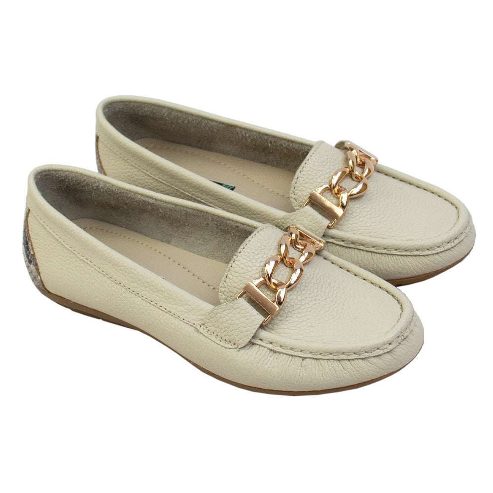 MOCASIN CHATO CADENA VAINILLA /PITON