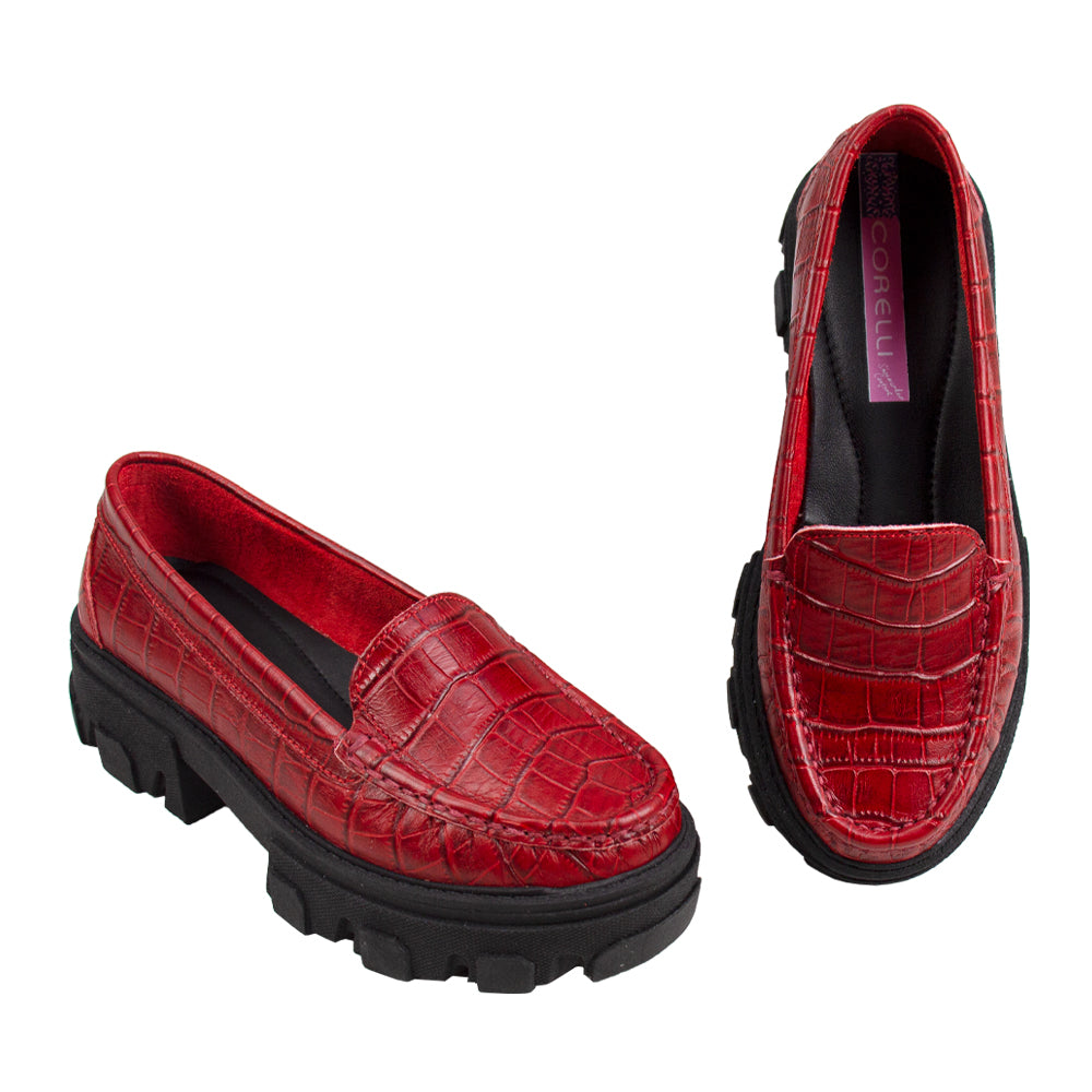 Siente la comodidad de nuestro Mocasín Plataforma Madonna CROCO Rojo