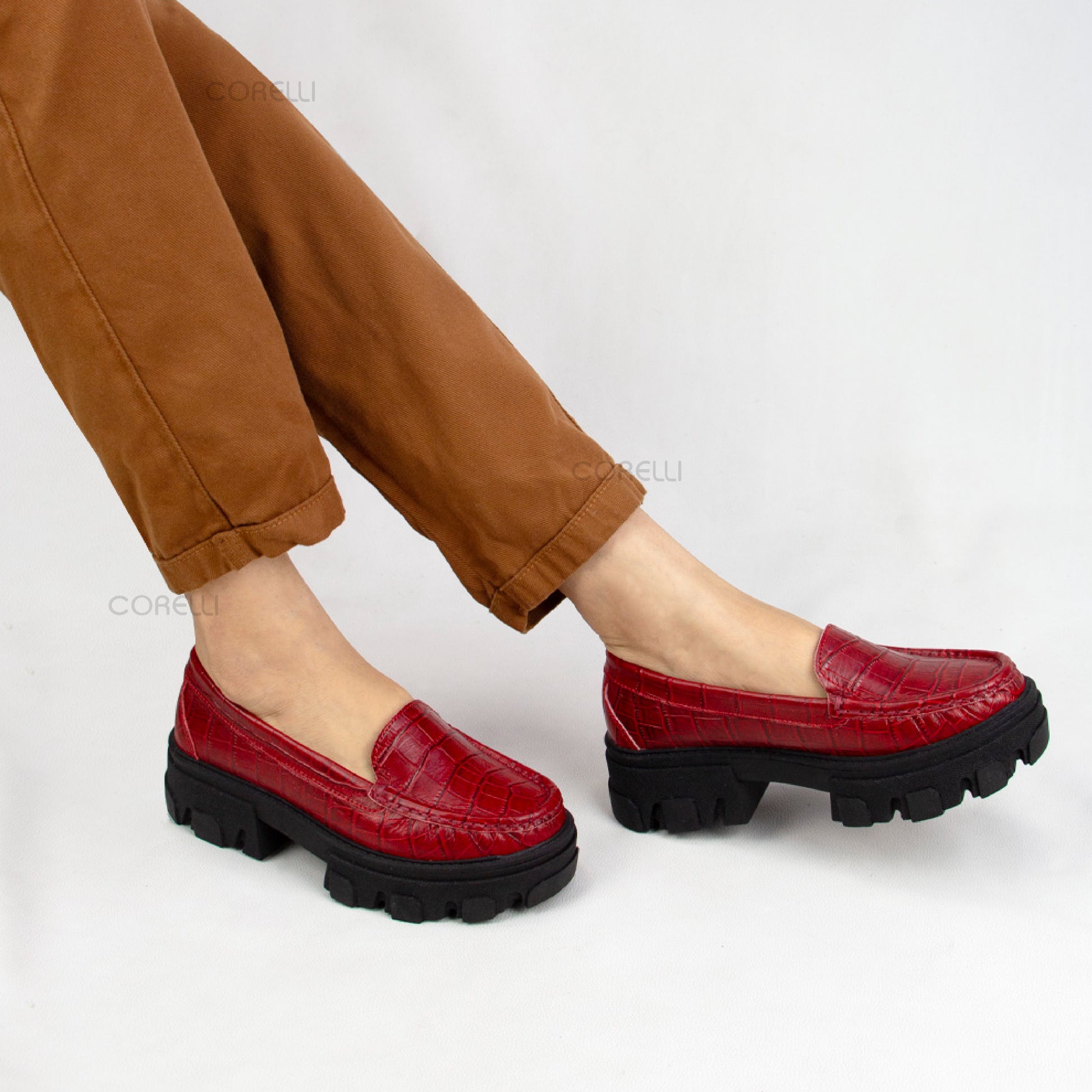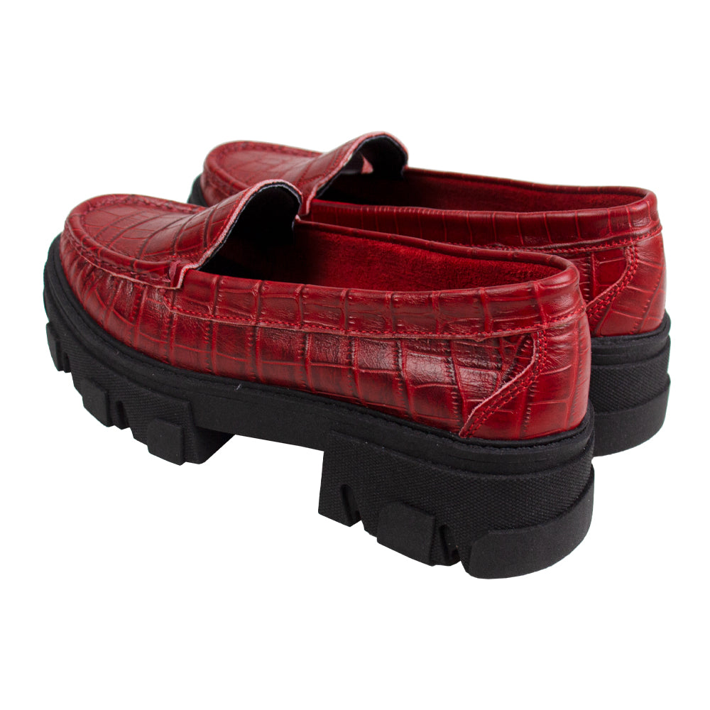 MOCASIN CHUNKY PLATAFORMA MADONNA CROCO ROJO