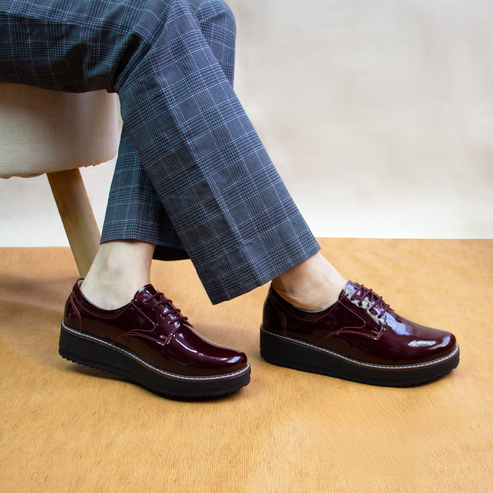 Siente la comodidad de nuestros Oxfords COREBAS CHAROL VINO