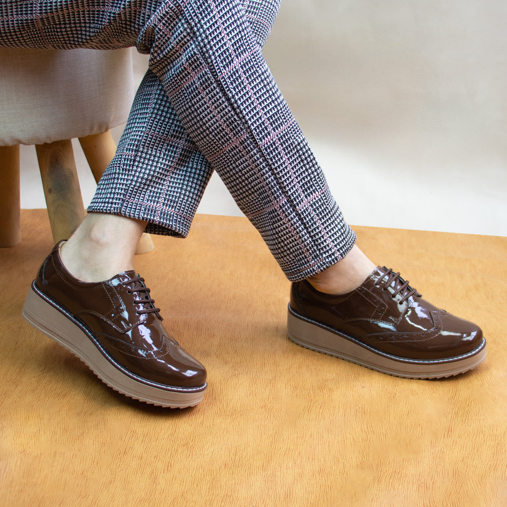 Siente la comodidad de nuestros Oxfords Mía Charol MARRON
