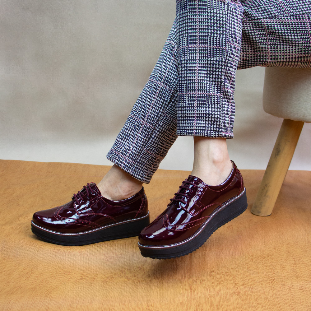 Siente la comodidad de nuestros Oxfords Mía Charol VINO