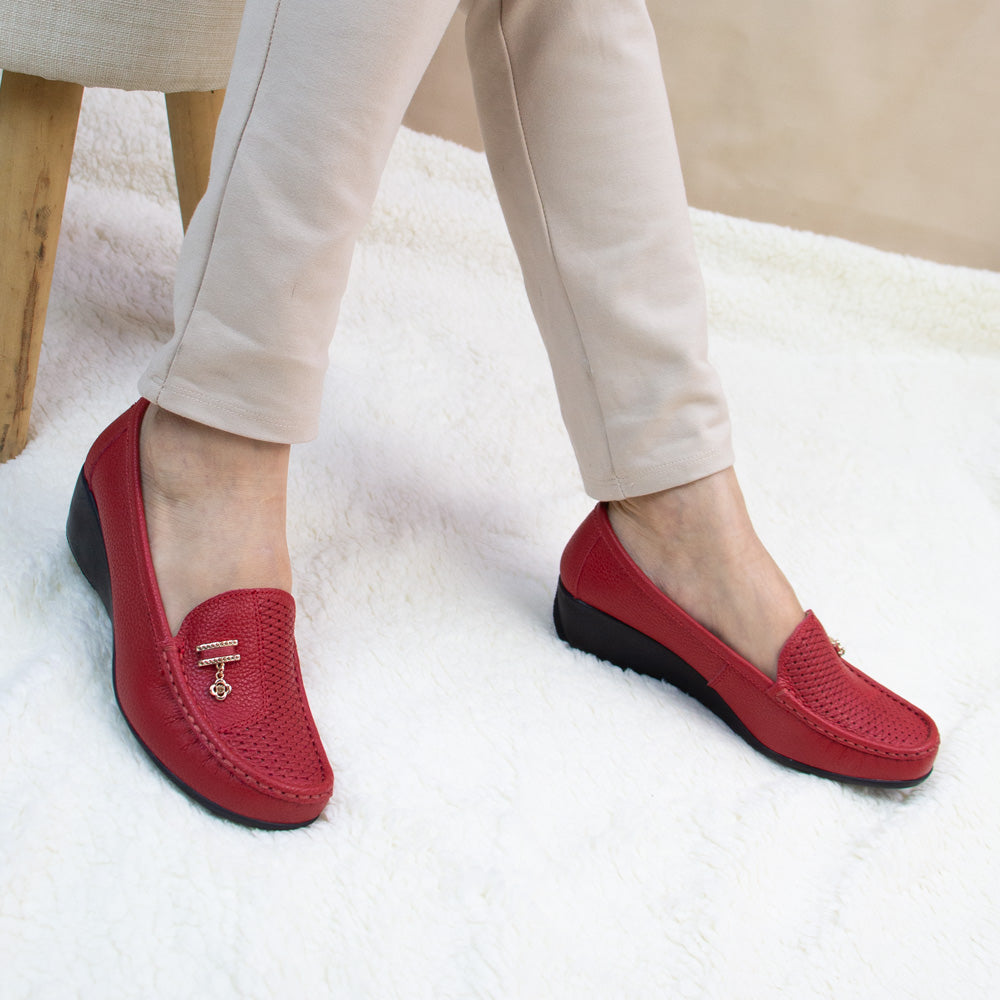 Siente la comodidad de nuestro Mocasín TACO CUÑA ROSA ROJO