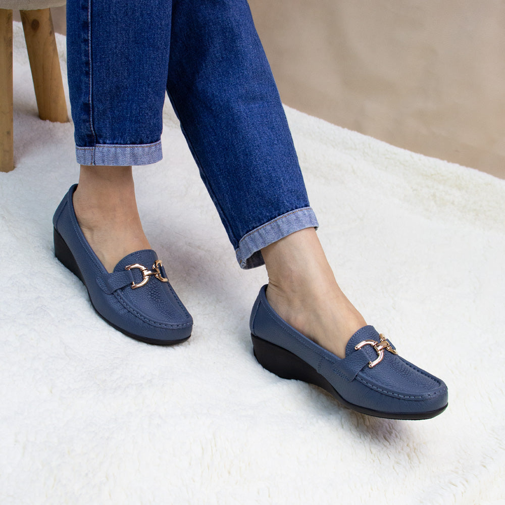 Siente la comodidad de nuestro Mocasín TACO CUÑA SOFI ACERO